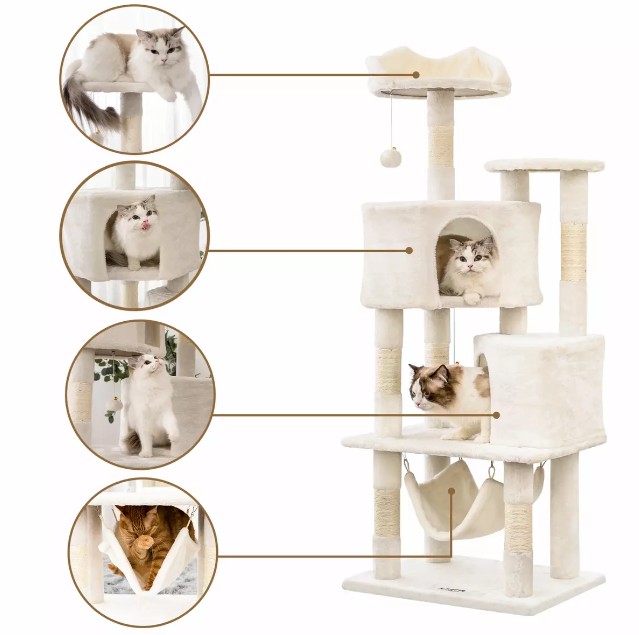 3. Experiência de vida dos gatos enriquecida: As árvores de gatos geralmente estão equipadas com uma variedade de brinquedos e dispositivos interativos, como bolas penduradas e cordas balançando, o que pode estimular os instintos de caça dos gatos e deixar que se divirtam e a satisfação no jogo. Ao jogar, os gatos podem consumir energia e aumentar a interação e a conexão emocional com seus proprietários.