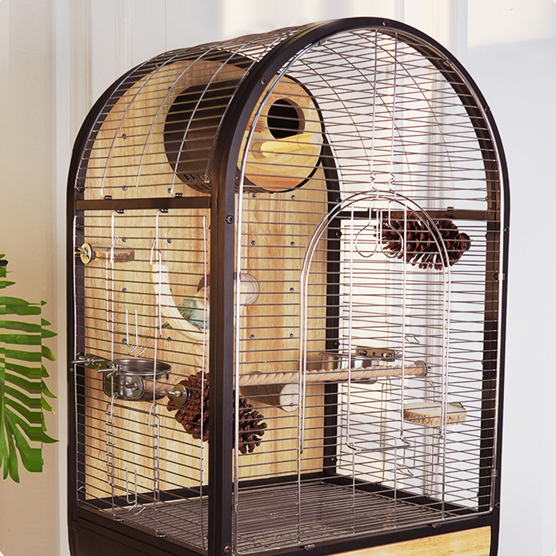 Gaiola de pássaro de madeira de aço natural Removável Villa Papagaio Capinhas de criação