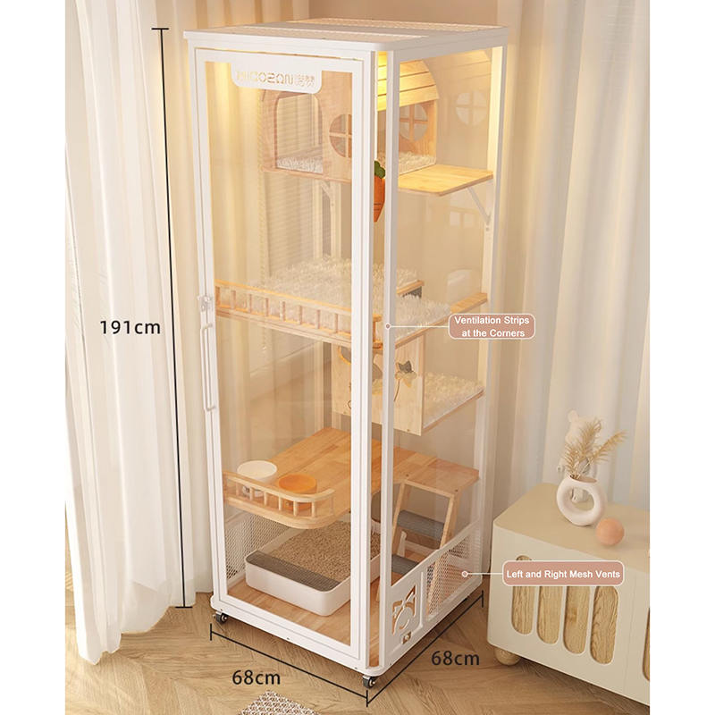 5. Configuração humanizada: Equipada com rodas universais fortes portadoras de carga, entrada gratuita e portas de saída com tampões de piso, detalhes atenciosos e proteger a segurança do seu gato.