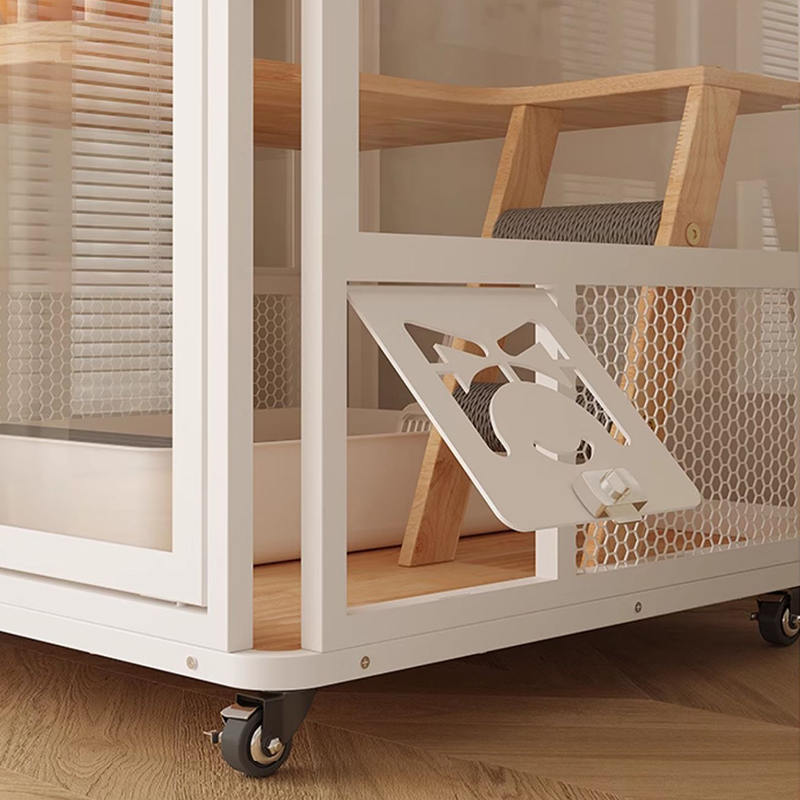 1. Materiais de alta qualidade: a estrutura da casa de gatos de madeira é de borracha aço de aço de aço de vidro temperado Kraft Paper Colunas Acessórios de hardware