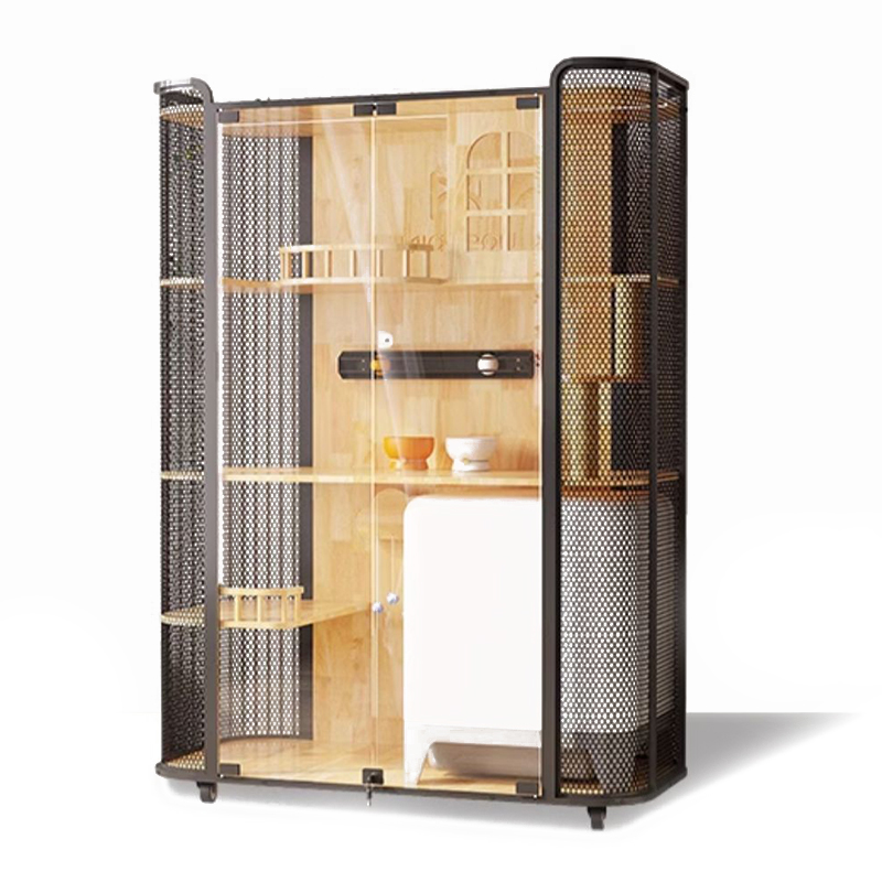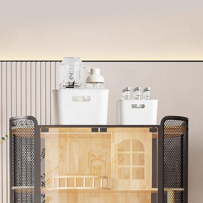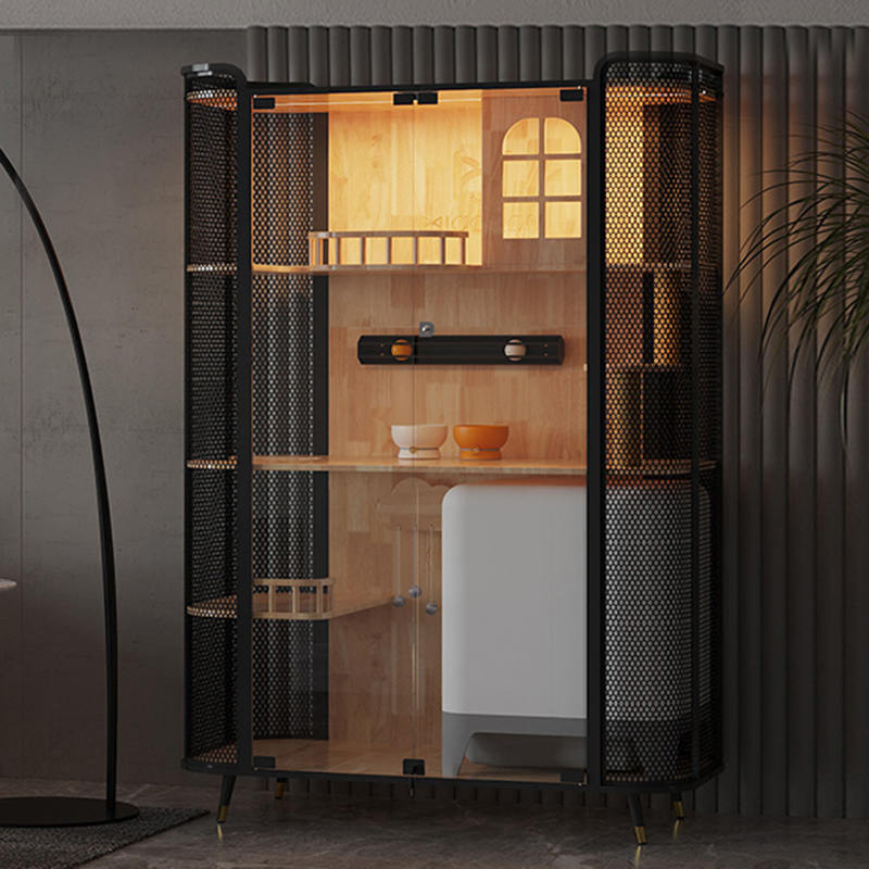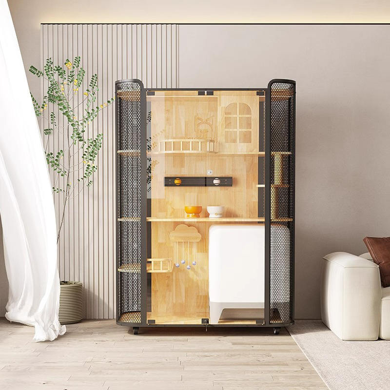 1. Materiais de qualidade: a estrutura da casa de gatos de madeira é a aço carbono de vidro temperado com madeira de borracha